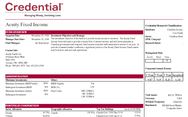 Detailed information is available for each fund that is listed in the "Choose Funds" worksheet. Click on a fund name to open another browser window to display the one page summary of the fund selected.